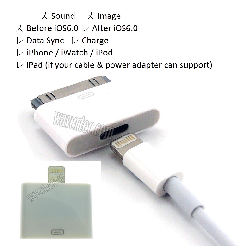 Lightning To 30 Pin Audio Adapter For Iphone 6s Plus White