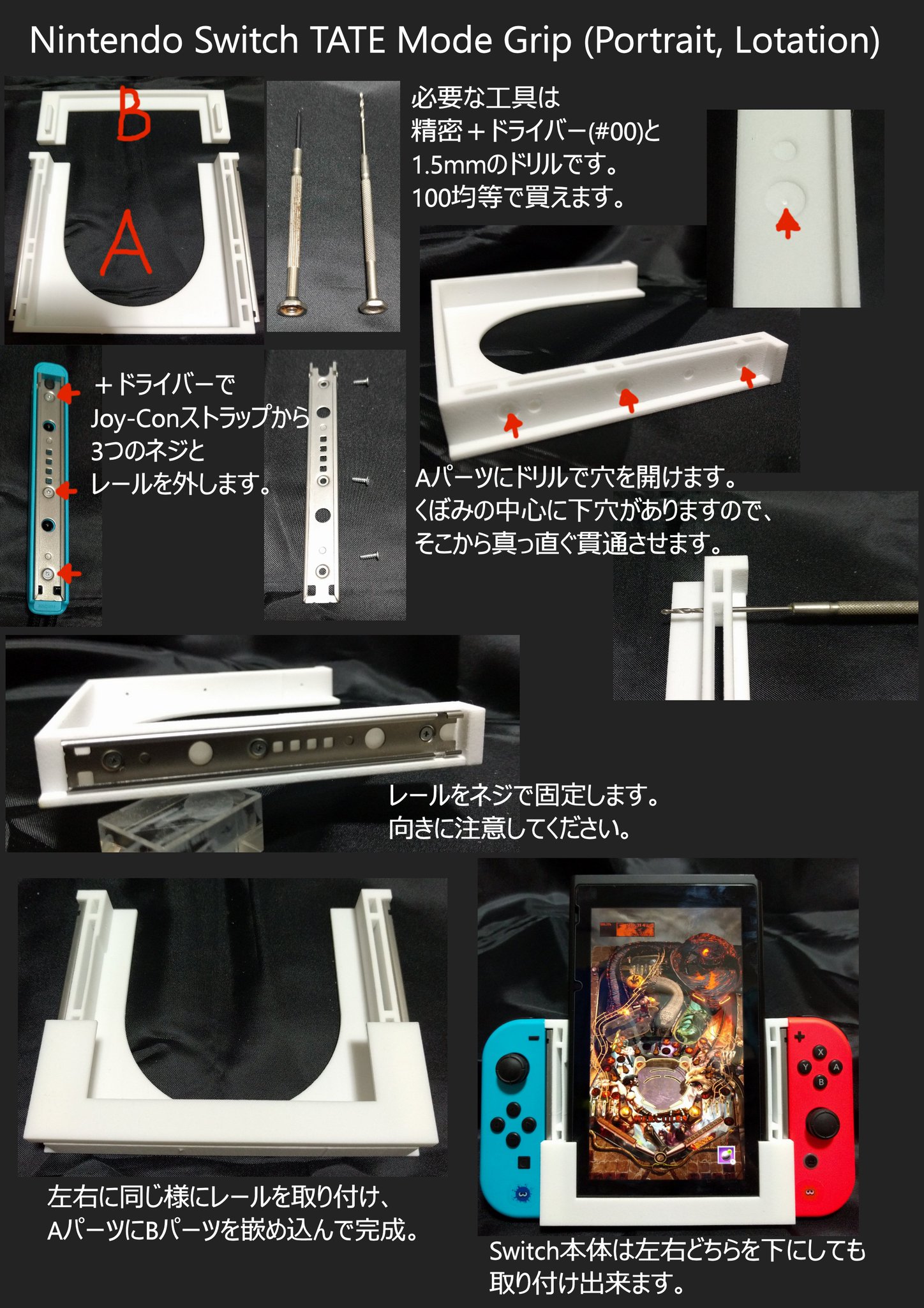 Noguo בטוויטר Nintendo Switch Tate Mode Grip 縦画面 Portrait Lotation を作ってみました 以下のサイトからご購入頂けます 送料込3 888円 組立にはjoy Conストラップ 2つ 精密 ドライバー 00 1 5mmのドリルが必要です Nintendoswitch Swtich スイッチ 3d
